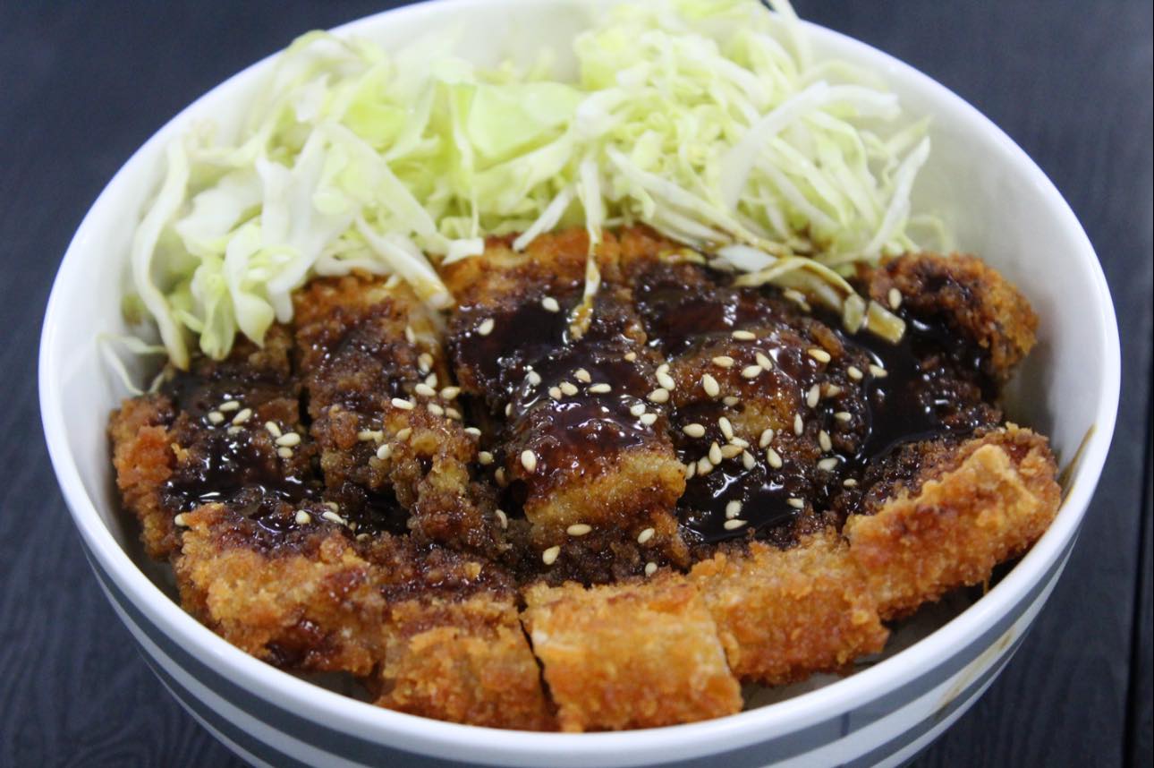A golden crispy pork cutlet coated in breadcrumbs and deep-fried, served with rice and savory sauce